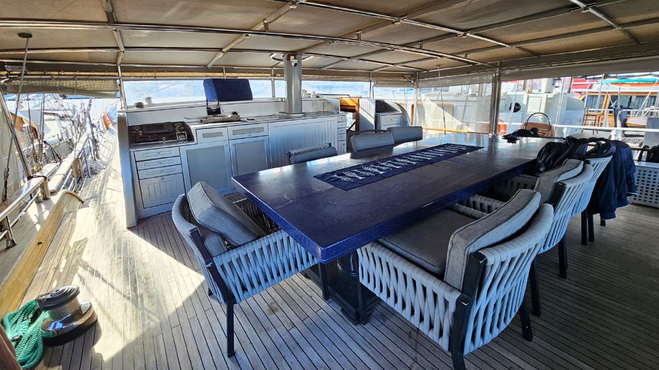 | Fully Equipped Galley | Ice Maker | Deck with dining area |