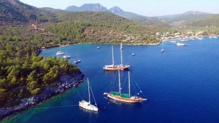 Named after the famous Turkish singer, Emil Sayin bay is an amazing crystal clear aquamarine bay that is contrasted against thick pine trees covering the land around it. The bay was named after her beautiful blue eyes, and is a memorable place for a lovely cool swim and brunch.