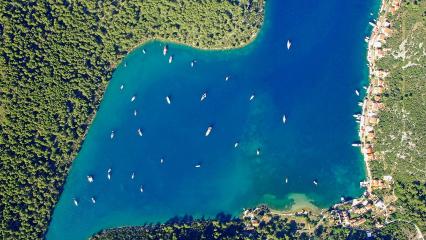 The island of Mljet is home to many small villages and ports, one of which is the harbor of Sobra. This beautiful little gem of a place offers you quiet restaurants with amazing view. What is really great is that you can moor anywhere in the bay, since the restaurants have all laid private mooring lines to attract sea travelers.