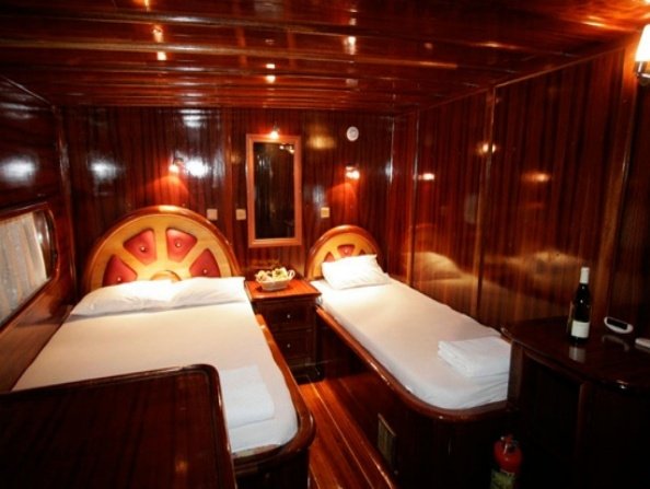 Gulet Esinti is 32 meters long and built in 2006. She has 1 Master, 5 Triple Cabins, thereby accommodating 12 guests, all in air-conditioned cabins. Each cabin has a separate WC and shower unit.