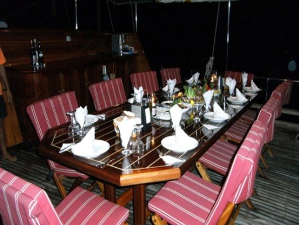 There is a spacious cushioned seating area, dining table and dining area at the rear of the boat. There is a separate dining table in saloon and your meals are prepared in a fully equipped separate kitchen. Esinti Gulet has enough sunbathing mats and space for all guests.