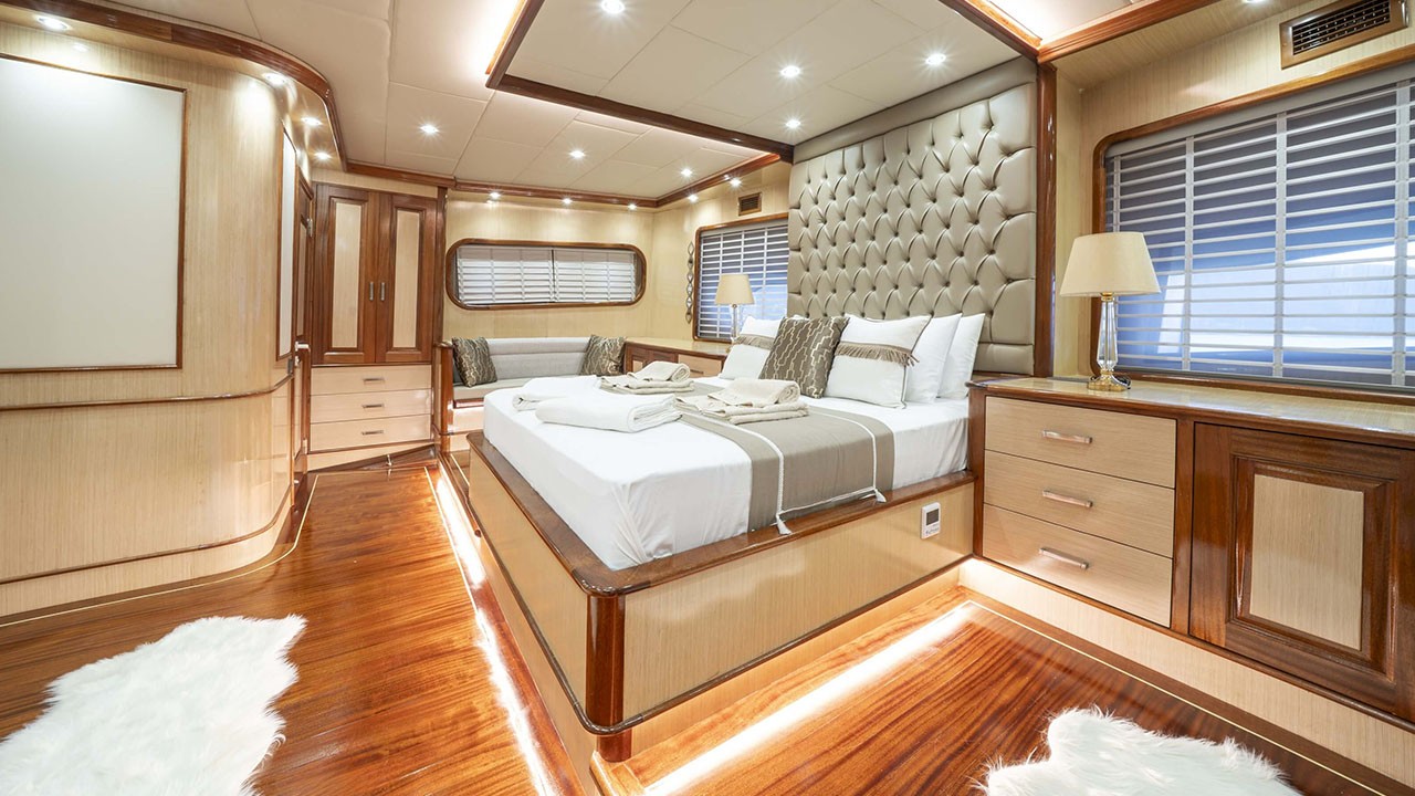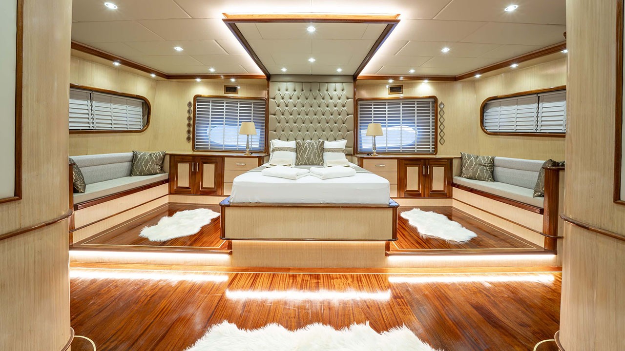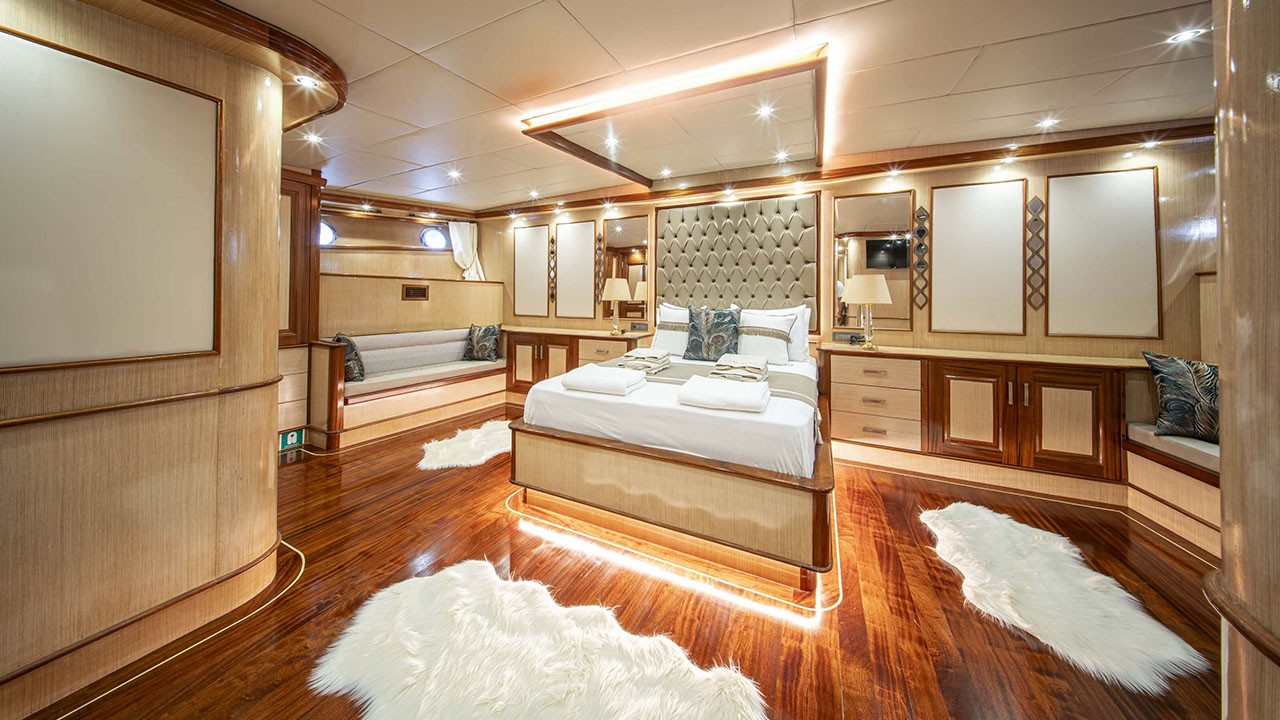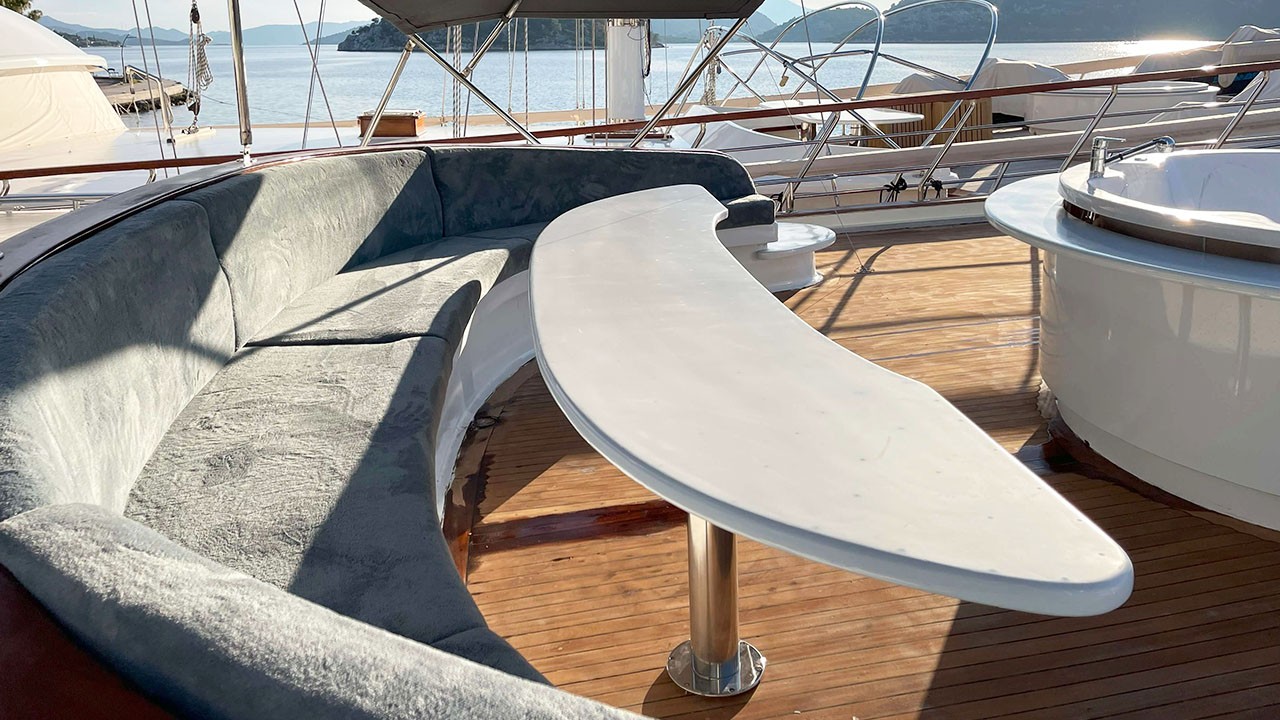 Kaan Ayaz 1 Gulet not only offers high-quality layout and furnishings but also offers luxury service with a highly professional 6 crew including an experienced. That crew consists of the captain, chef, deckhand as well as service personnel. They have accommodation separate from the passengers. The crew is committed to all your needs such as organizing daily activities in the boat, cleaning, general service, meals and drinks, and security. Safety and comfort of our guests is an absolute priority and the crew has been trained to ensure that.