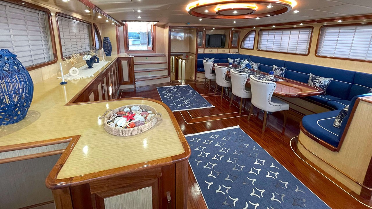 Gulet Kaan Ayaz 1 is one of the best luxury Gulets for a yacht charter in Turkey and Greek Islands. Gulet Kaan Ayaz 1 is specially designed to offer a relaxing and entertaining atmosphere to exclusive guests, thereby adding to the pleasure of their yacht vacation. You can easily charter this yacht by Guletyacht.net and then sail on an unforgettable cruise.