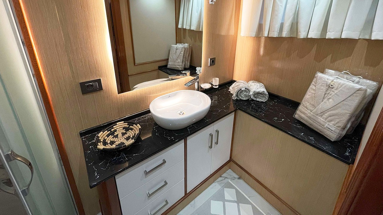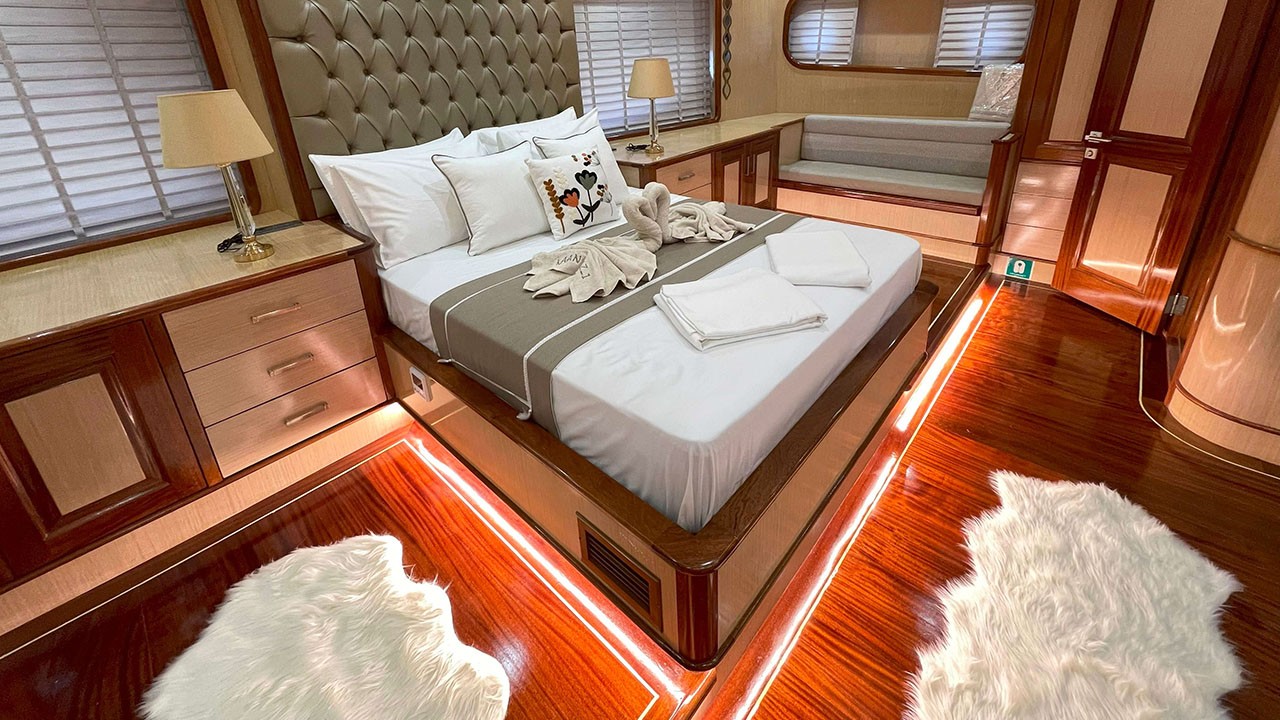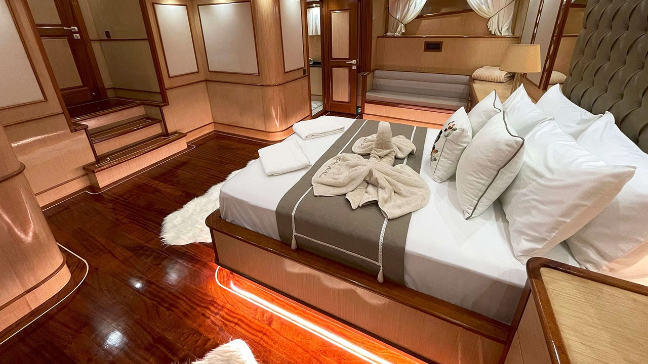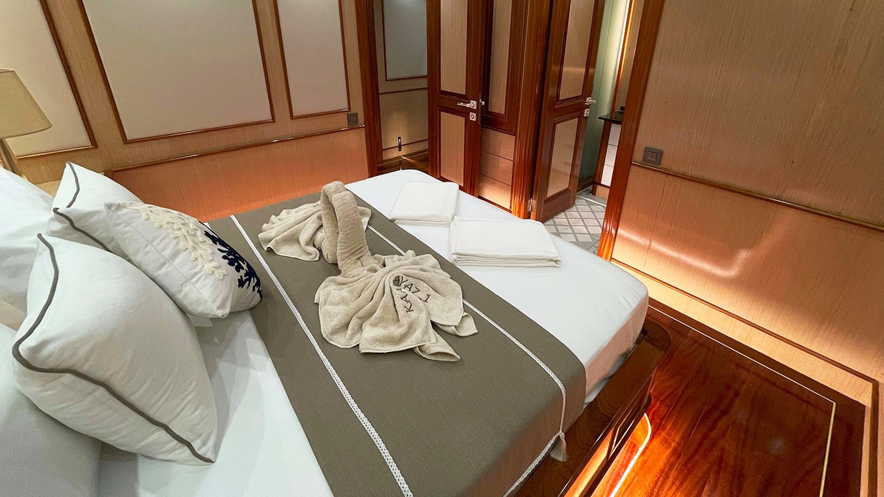 Kaan Ayaz 1 is a high-quality Gulet, 36 meters in length, built in 2025. There are modern and spacious cabins, specially designed with hall and deck. She accommodates 12 guests in 2 Master, 2 Double, 2 Triple Cabins, Each has a private shower and toilet. All yachts, including cabins, are air-conditioned.