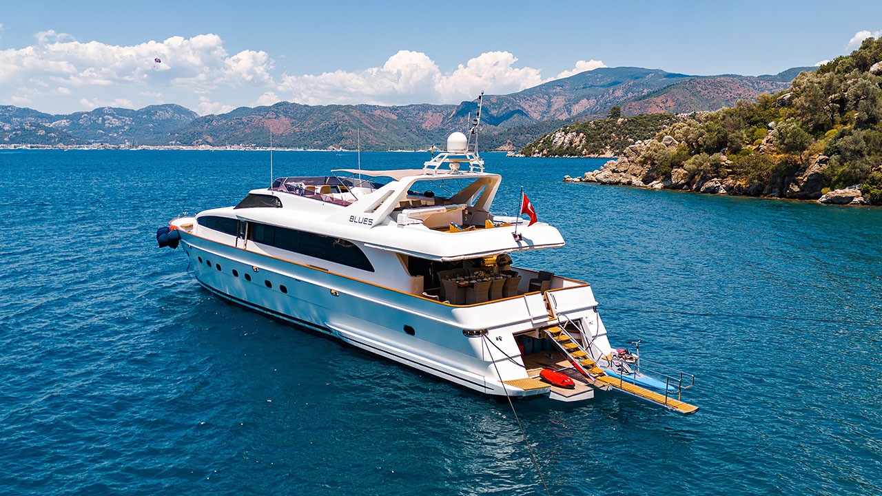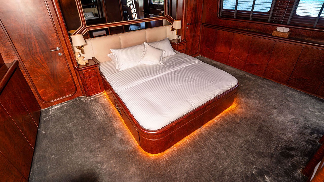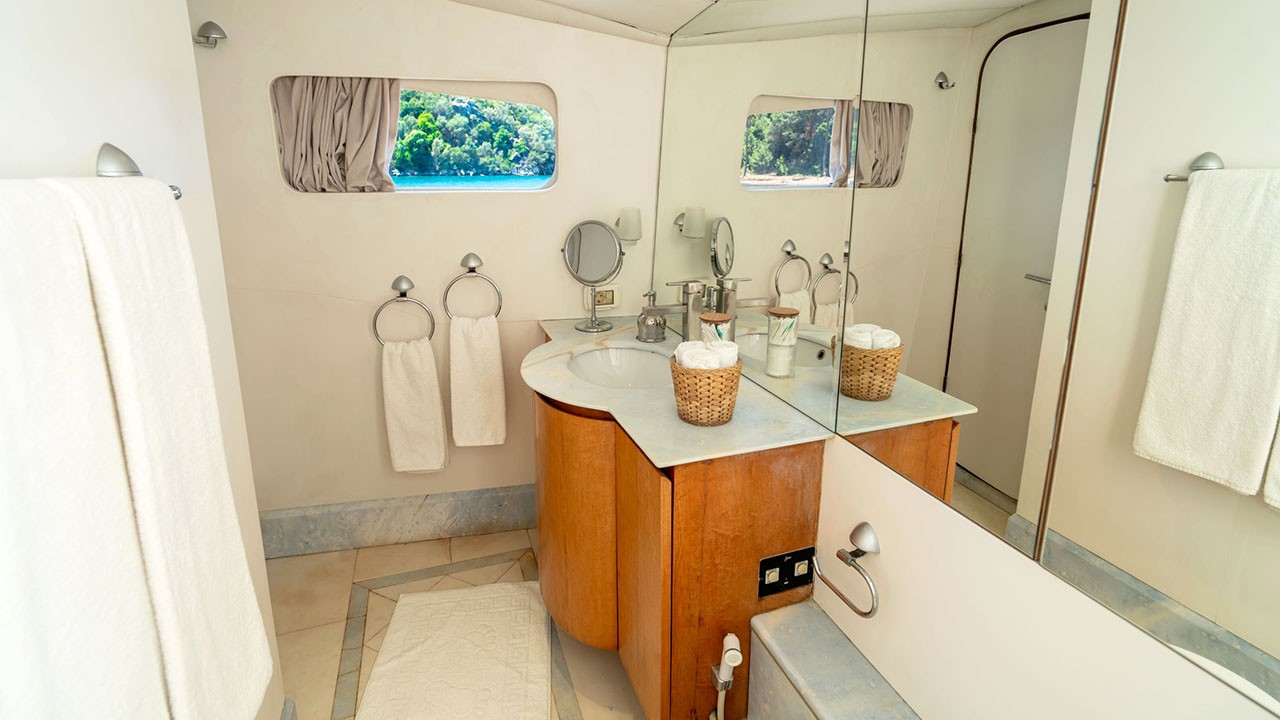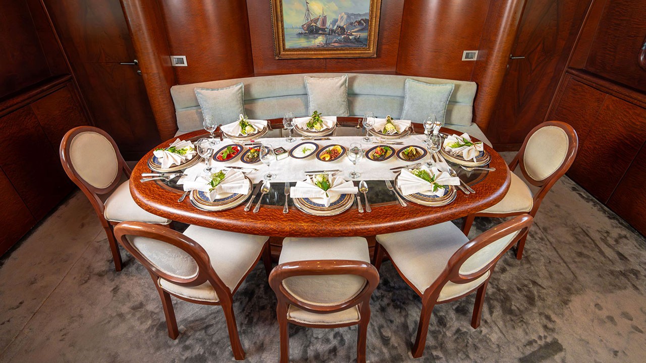 | Indoor Dining, Internet Connection, VHF Radio, Fully Equipped Galley, Satellite, Watermaker, TV & DVD Player in saloon, Ice Maker, Tv & Dvd In All Cabins, Music System in salon, Deck shower, Full Navigation Equipments, Card Games, Backgammon, Sun Mattresses, Full Safety Equipments, Life Jackets, Ipod Connection, Liferaft, Deck with dining area, Marine Type Toilet, Fire Extinguishers, Air conditioner, Flybridge | |||||