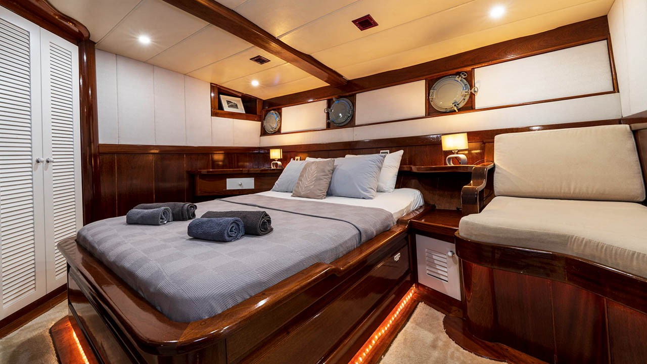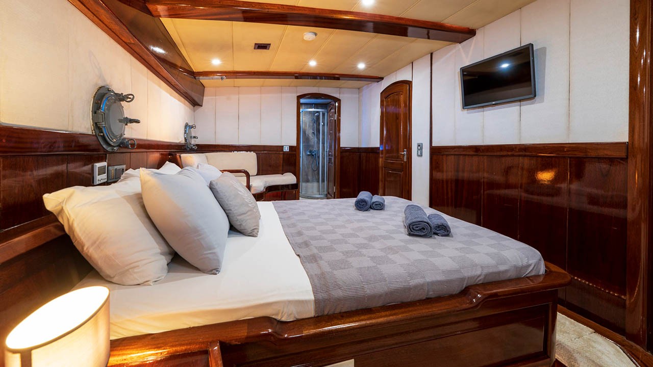 Nautilus (Turkey) is a high-quality Gulet, 38 meters in length, and completely renovated in 2023. There are modern and spacious cabins, specially designed with hall and deck. She accommodates 10 guests in 2 Master, 3 Double Cabins, Each has a private shower and toilet. All yachts, including cabins, are air-conditioned.